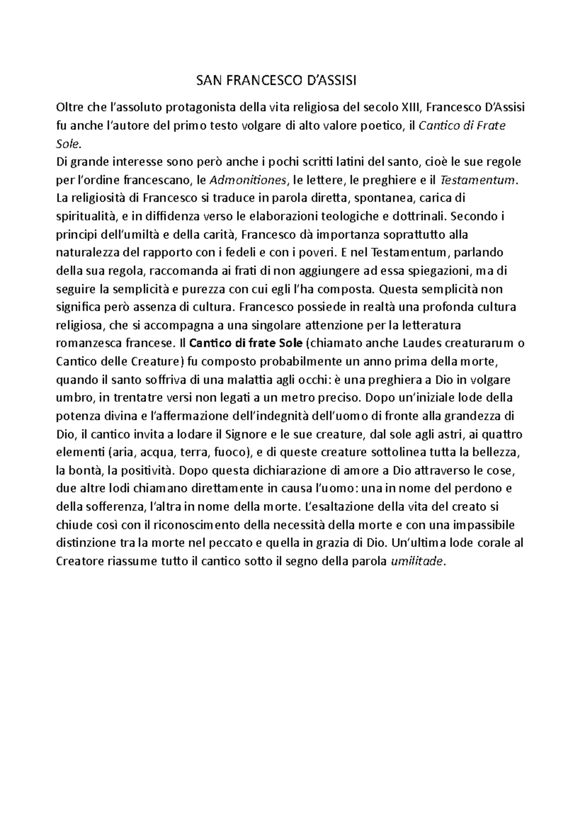 San Francesco D Riassunto Storia Della Letteratura Italiana Il Novecento E Il Nuovo Millennio Studocu |